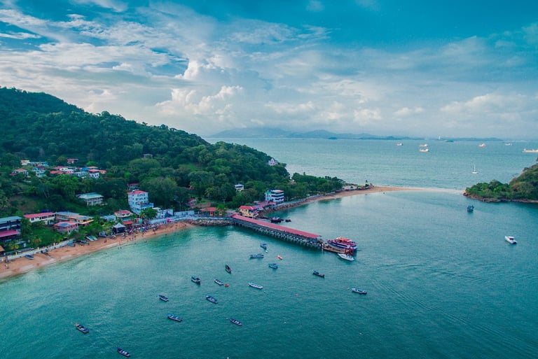 Ubicación y Descripción: La Isla Taboga, conocida como la "Isla de las Flores", está situada en el golfo de Panamá, a solo 12 millas de la ciudad de Panamá. Este encantador destino es famoso por su rica historia, exuberante vegetación, playas de arena dorada y aguas tranquilas. Con una combinación perfecta de belleza natural y encanto histórico, Isla Taboga es un refugio perfecto para aquellos que buscan escapar del bullicio de la ciudad.